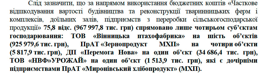 Судя по аудиту Счетной палаты, речь идет именно о дочерних предприятиях МХП, которые за просто так получили из бюджета почти 1 млрд грн компенсаций.