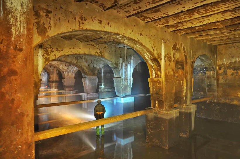 А этот объект расположен в самом центре Киева. Кто бы мог подумать, что под склонами Владимирской горки скрывается водохранилище? А над ним - гигантские арочные конструкции из старинного кирпича, которую сравнивают с стамбульской "Цистерной Базилика". Оказывается, здесь более 150 лет назад был заложен первый в Киеве централизованный водопровод!