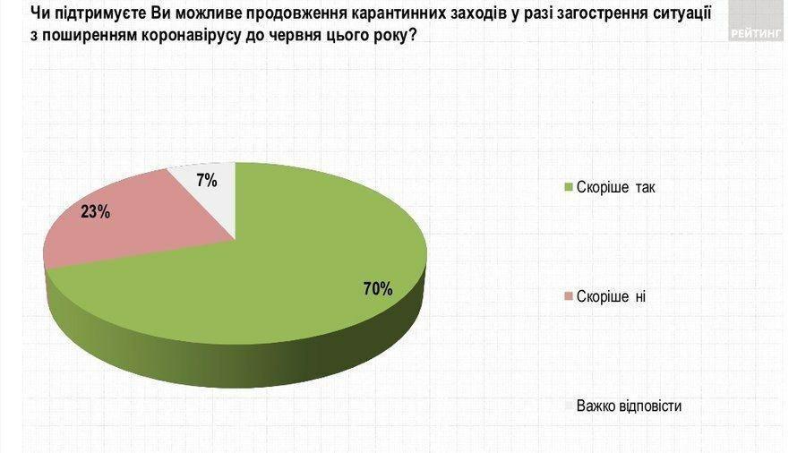 07:44 Большинство украинцев поддерживают возможное решение о продлении карантинных мероприятий в случае обострения ситуации с распространением коронавируса до июня этого года. Опрос провела социологическая группа "Рейтинг".