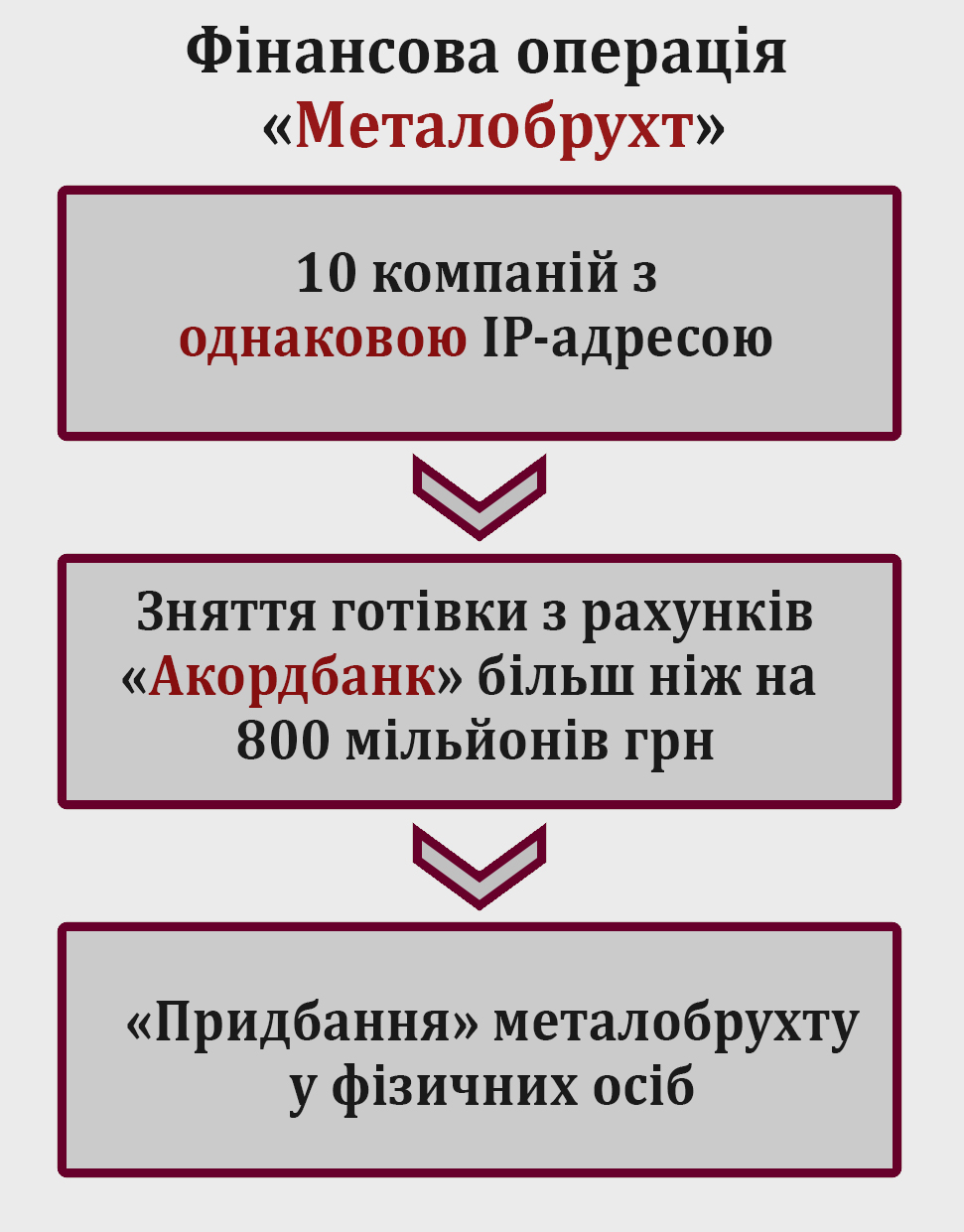 Так, десять фирм, имевших одинаковые IP-адреса, для покупки металлолома сняли в кассе банка 861,5 миллиона гривен.