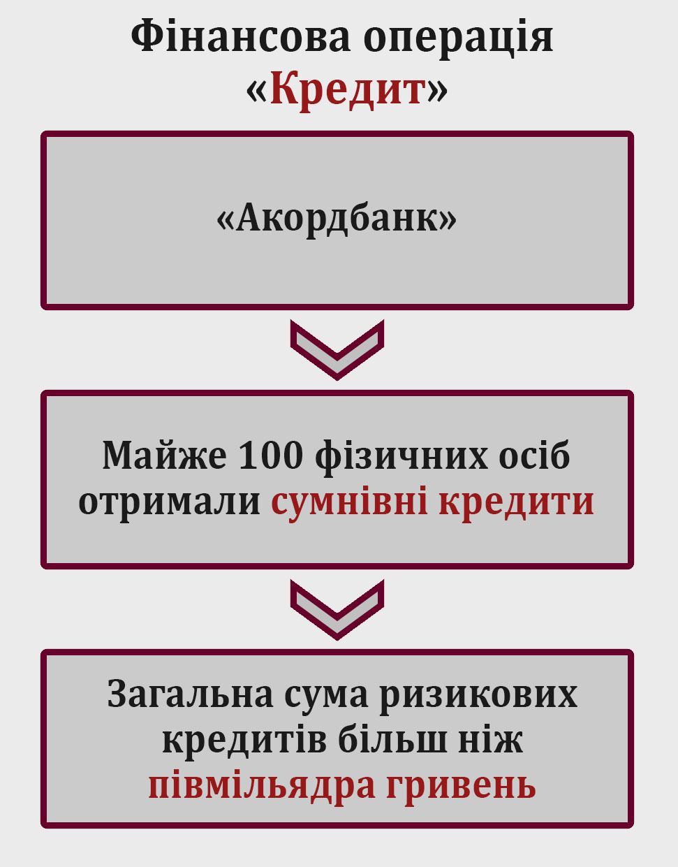 В результате, за неполных два года (январь 2017 года – январь 2019 года) около 100 физических лиц взяли в "Аккордбанке" кредиты на сумму, превышающую полмиллиарда гривен.