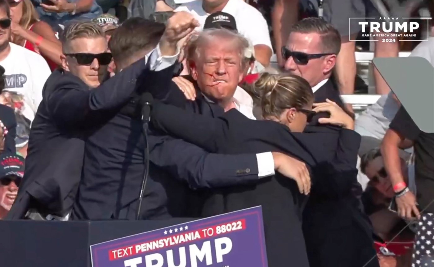 Трамп узодил с окровавленным лицом, подняв в воздух кулак.