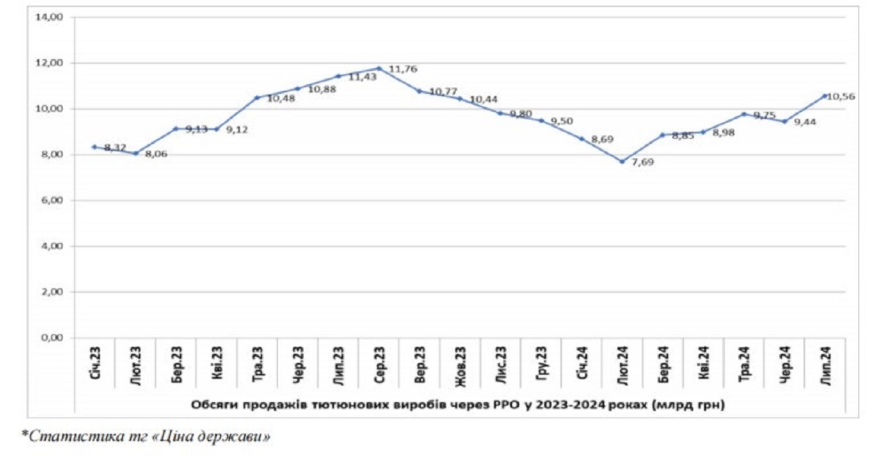 Недавно телеграм-канал "Цена государства" выложил статистику выручки табачной продукции через РРО в 2023-2024 годах.
