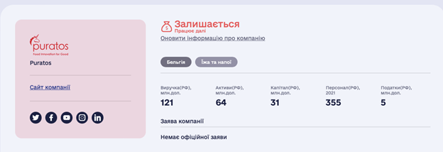 "Пуратос-Россия" занимает четвертое место среди пяти крупнейших производителей пищевых продуктов по объему выручки в россии. И это может свидетельствовать о непосредственном или косвенном участии компании в поставке продовольствия для нужд армии страны-агрессора. Поскольку хлебобулочные изделия являются важной составляющей обеспечения, и на сегодняшний день армия россии остается одним из основных потребителей такой продукции.