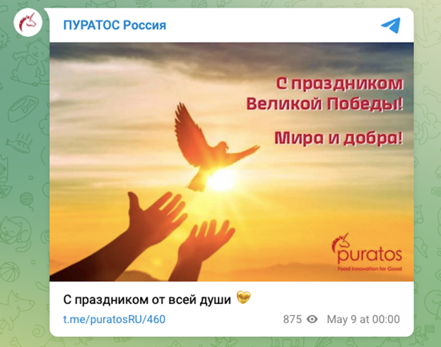 Через несколько месяцев после полномасштабного вторжения в материале издания Dzen.ru директор "Пуратос-россия" Наталья Петренко заявляла, что их партнеры и поставщики компании ищут пути, как продолжать бизнес в России. Более того, по ее словам, если главному офису компании придется их "отрезать", то российская дочерняя компания сможет работать в России еще несколько лет.