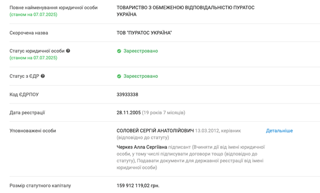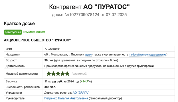 Скриншот из российских реестров - https://www.audit-it.ru/contragent/1027739078124_ao-puratos