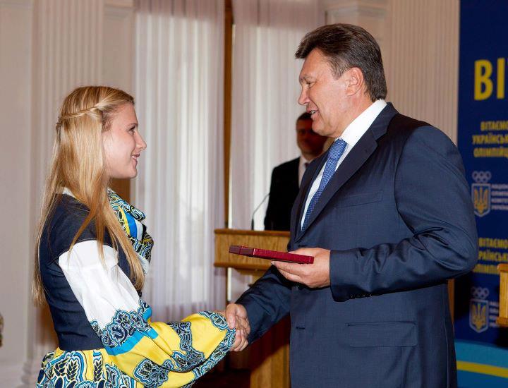 Виктор Янукович вручает награду Ольге Харлан. Фото: Facebook