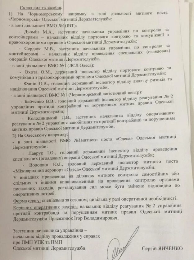 Непосвященные в бюрократические тонкости и таможенную специфику граждане такую бурную деятельность и.о. Главы Одесской таможни наверняка бы одобрили, но беда в том, что этот "план-задание" не регламентирован ни одной нормой действующего законодательства, что может свидетельствовать о превышении должностных полномочий Олегом Погориловским. Подобные планы-задания составлялись для таможенной стражи, однако эта структура была упразднена еще 8 лет назад. Очевидно, что проработав большую часть своей карьеры на таможне, Погориловский не мог об этом не знать. А значит истинное предназначение плана может быть совершенно другим – не только выявить и изучить контрабандные схемы на Одесской таможне, но и "сесть на потоки". Для этого назначают так называемых "смотрящих", которые будут отвечать за стабильность финансовых потоков в виде черного нала на самую верхушку.