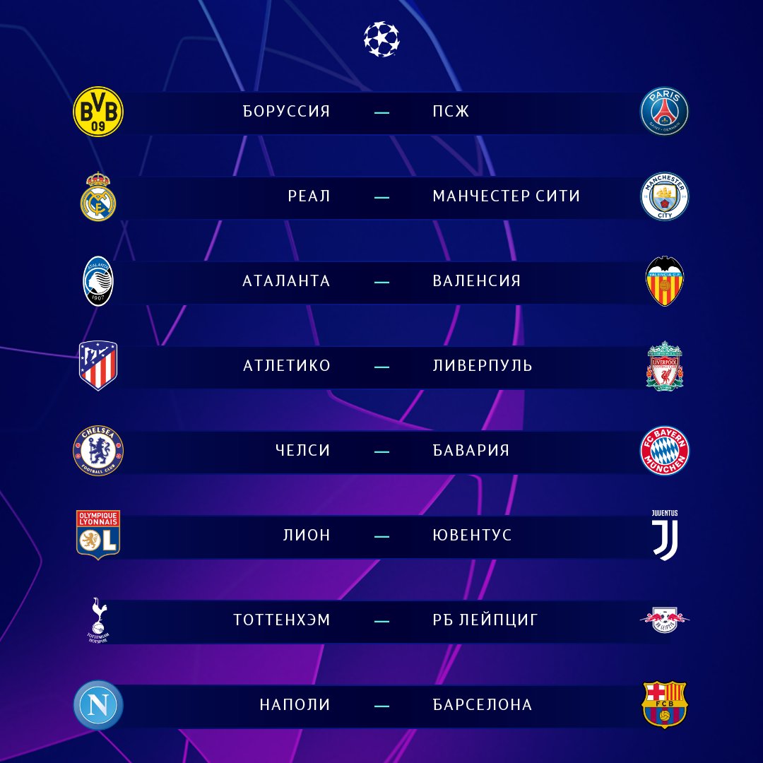 Несеяные: Реал Мадрид, Тоттенхэм, Аталанта, Наполи, Атлетико, Боруссия Дортмунд, Лион и Челси.