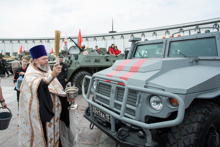 Священник освящает автомобили Росгвардии, Россия