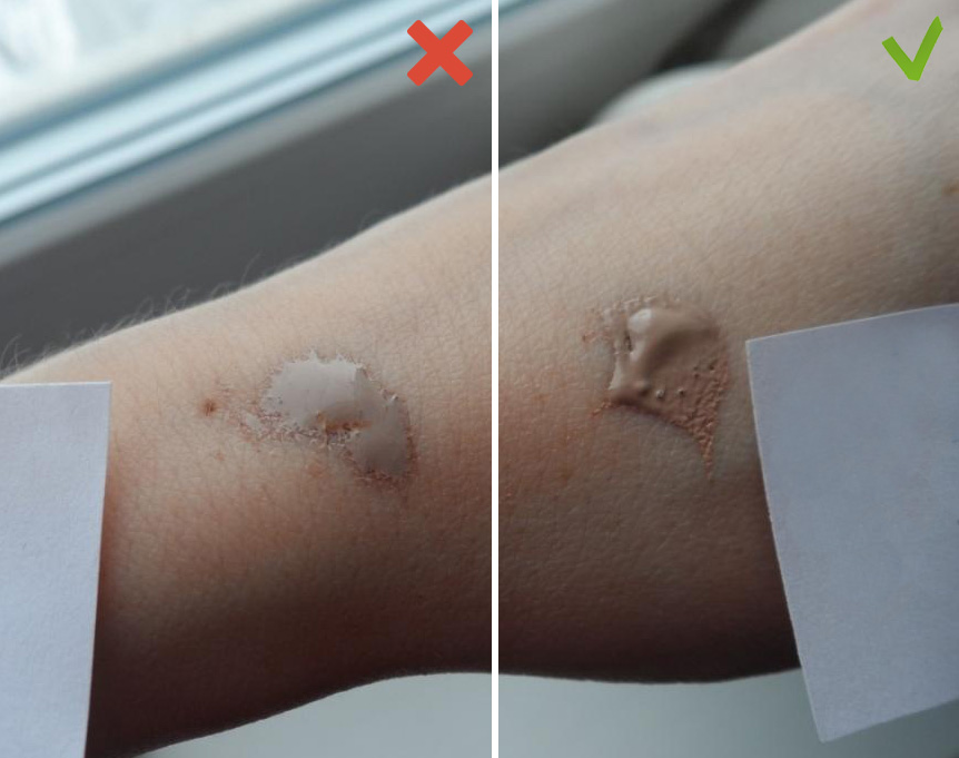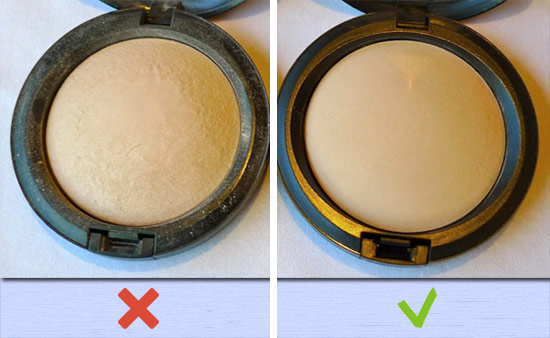 Обращайте внимание на то, как пахнет и как наноситься продукт. Например, тональный крем должен быть однородным, без комочков, должен быстро впитываться и не менять цвет после нанесения. Пудра для лица и другие подобные продукты должны быть плотными, не слишком сильно крошиться и не должны напоминать мел или муку.