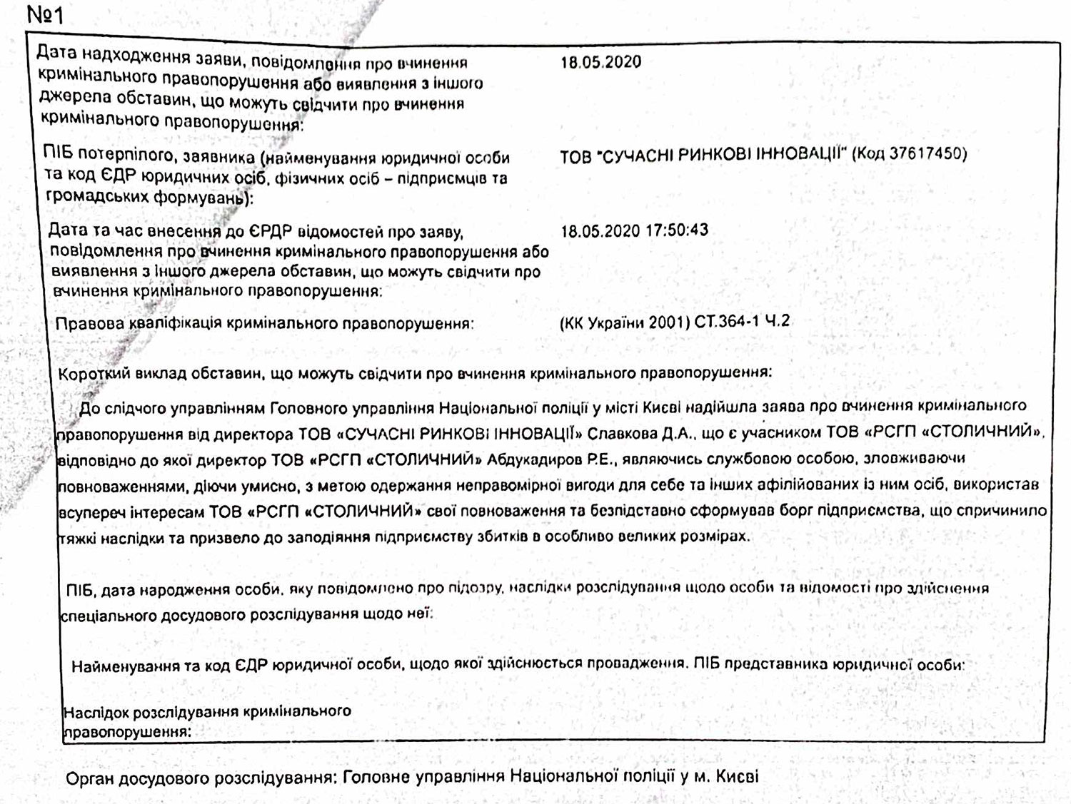 В феврале 2020 года, по данным нашего источника, Абукадыров подписал соглашение с ЧАО "Закрытый недиверсифицированный венчурный корпоративный инвестиционный фонд "Новые технологии" о, якобы, покупке "Столичным" ценных бумаг, стоимость которых превышала рыночную, на сумму 45 млн грн. Рынок перечислил лишь 26 млн грн, и "Новые технологии" потребовали возвращения еще 19 млн. Похожий договор, отмечает источник, Абдукадыров подписал и с ООО "Донбасская угольная компания", якобы, купив у компании ценных бумаг на 97,9 млн грн. Ценные бумаги "Столичному", якобы, были переданы, деньги Абдукадыров не перечислил и ООО предъявило долговые требования на 97,9 млн грн.