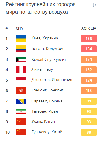 Согласно рейтингу сайта IQAir, по состоянию на 12:30, 5 сентября, Киев стал городом с самым грязным воздухом в мире.