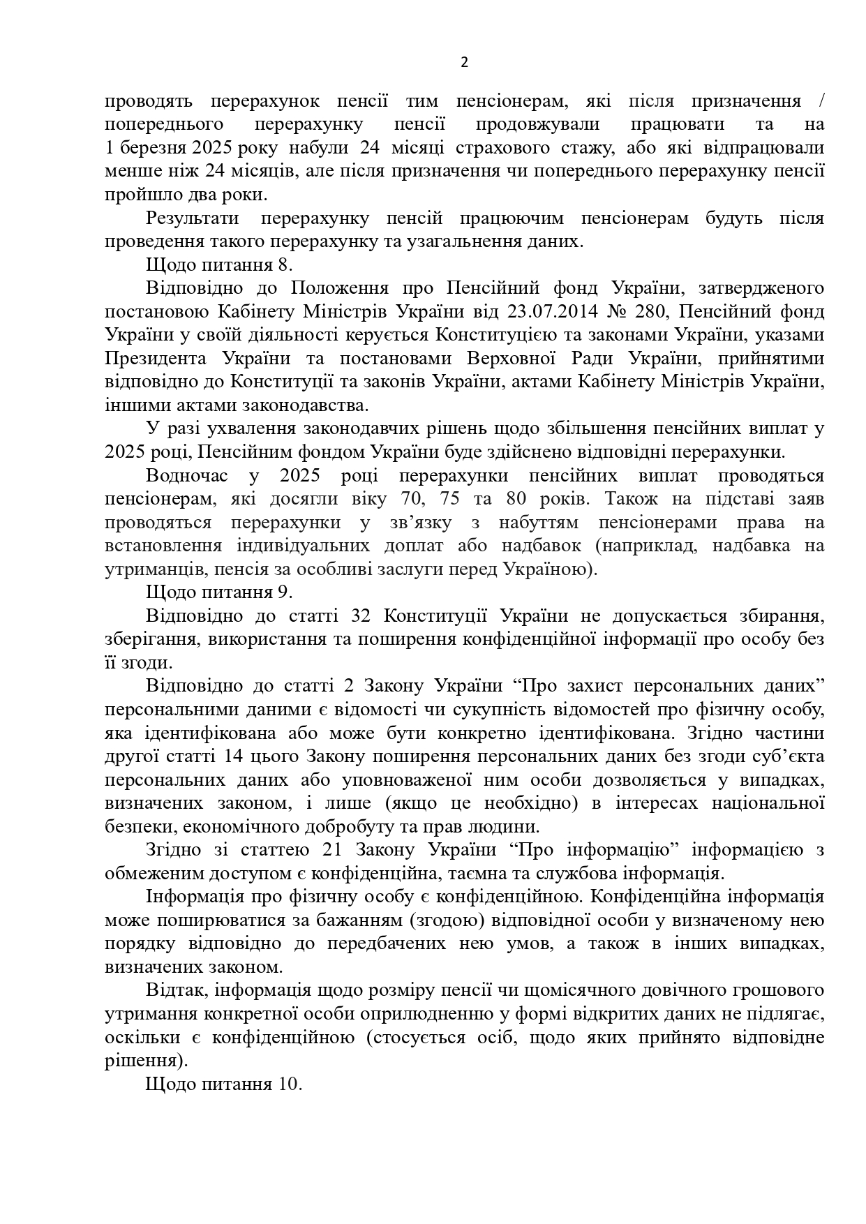 "В случае принятия законодательных решений по увеличению пенсионных выплат в 2025 году, Пенсионным фондом Украины будут осуществлены соответствующие перерасчеты", - ответили на это в ПФУ.