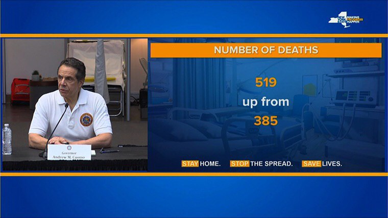 20:32 США, НЬЮ-ЙОРК. В штате умерли 519 человек, в частности 134 за минувшие сутки