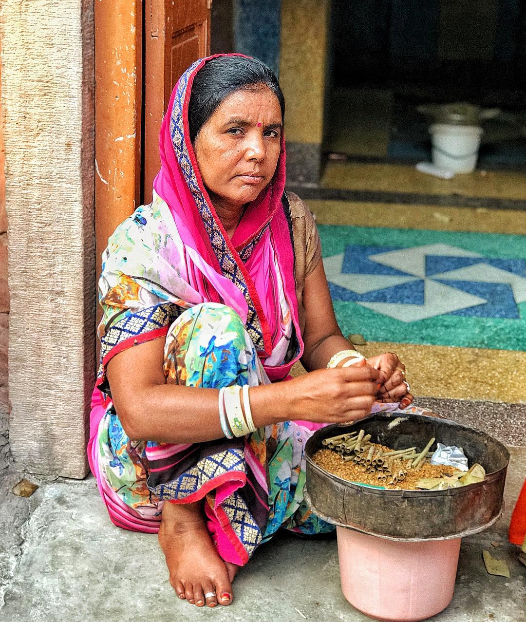 Женщина в Индии крутит и продает местные сигареты беде