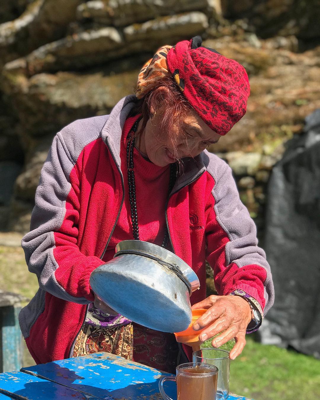 Женщина в Непале делает чай с имбирем