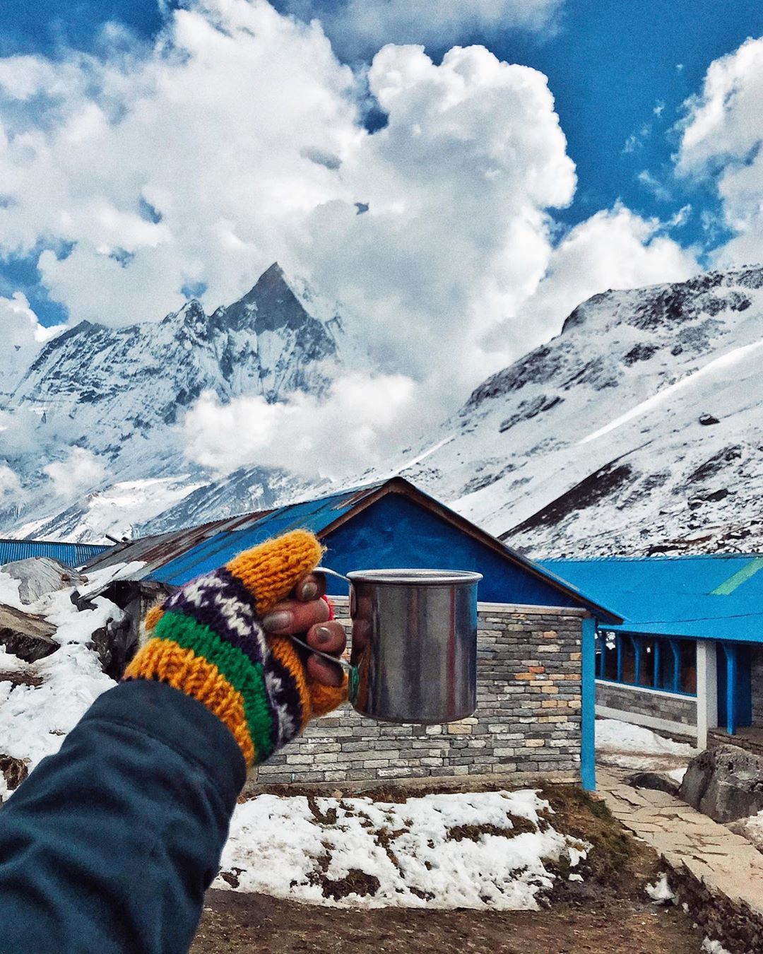 В Непале вообще каждый альпинист идет весь трек сам, а друг с другом встречается только в лоджах - местах для ночлега и еды. Лоджи не отапливаются, вместо кроватей там деревянные нары, на которых ты спишь в спальном мешке. Но после дня дороги это кажется довольно комфортным. На высоте в лоджах ты можешь жить бесплатно, но все очень дорого. Душ стоит 5-7 долларов. Зарядка для телефона - 2-3 "бакса" в час. В итоге ты тратишь деньги на то, о чем никогда бы не подумал.