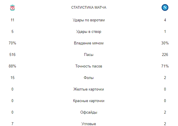 35. Полностью нейтрализовали защитники Наполи опасное трио нападающих Ливерпуля. Ни одного удара не было от Фирмино, Салаха или Мане.