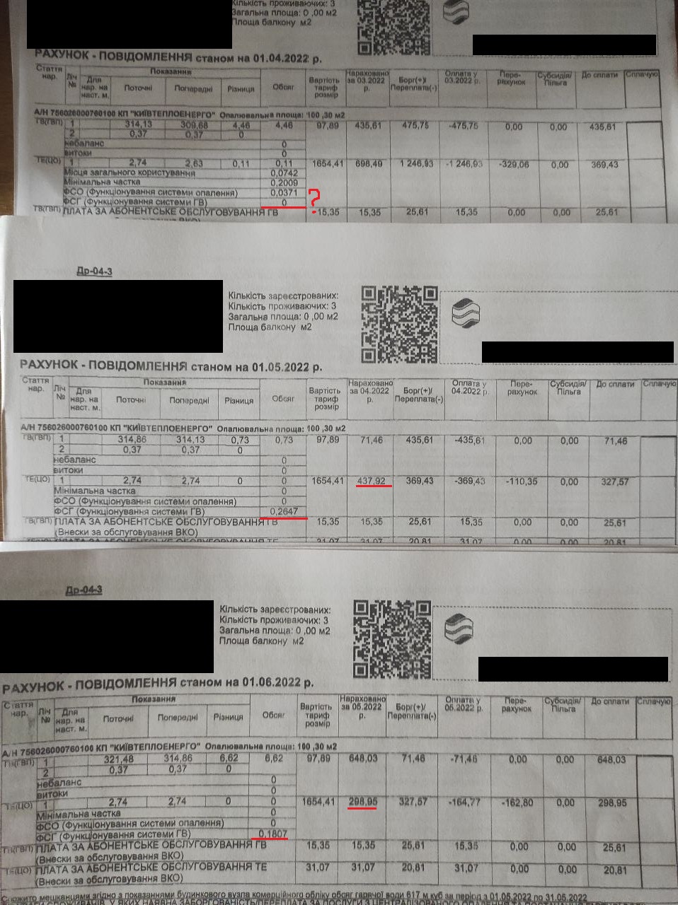 Одним из таких оказался владелец квартиры в многоэтажке в Дарницком районе столицы, в которой более 400 квартир. Он показал свои платежки, где в графе Тепловая энергия (ЦО) ему насчитали по 300-400 грн за ФСГ. Он рассказал "Апострофу", что такая же ситуация и у других жильцов дома.