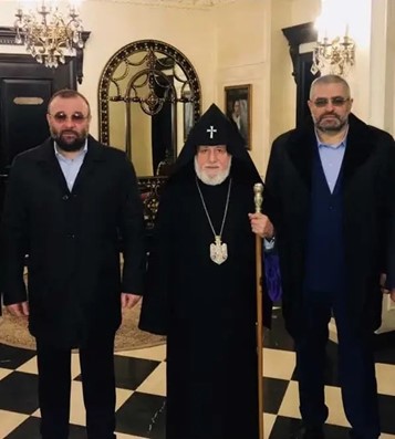 Меценаты Александр Петровский и Эмиль Арутюнян, глава Армянской апостольской церкви Гарегин II