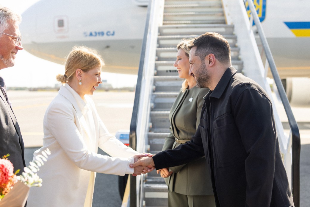Президент Украины Владимир Зеленский и его жена Елена Зеленская прибыли с официальным визитом в США. На трапе самолета первая леди продемонстрировала сдержанный образ, дополненный символическим украшением.