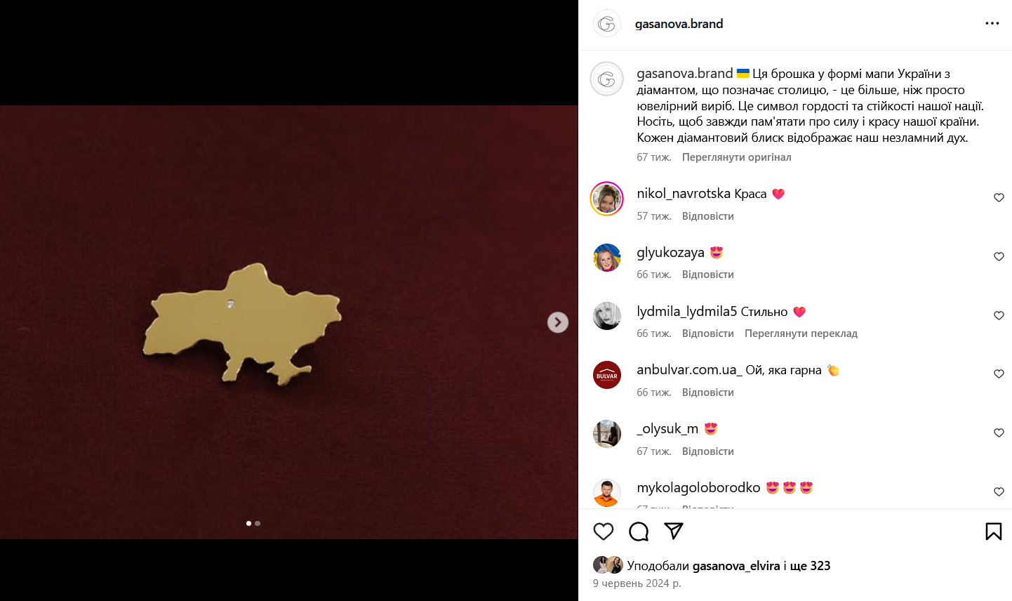 Впоследствии бренд GASANOVA разработал брошь с бриллиантом на месте Киева, а накануне Саммита первых леди и джентльменов создал специальное украшение с логотипом события для Елены Зеленской и гостей ежегодного мероприятия.