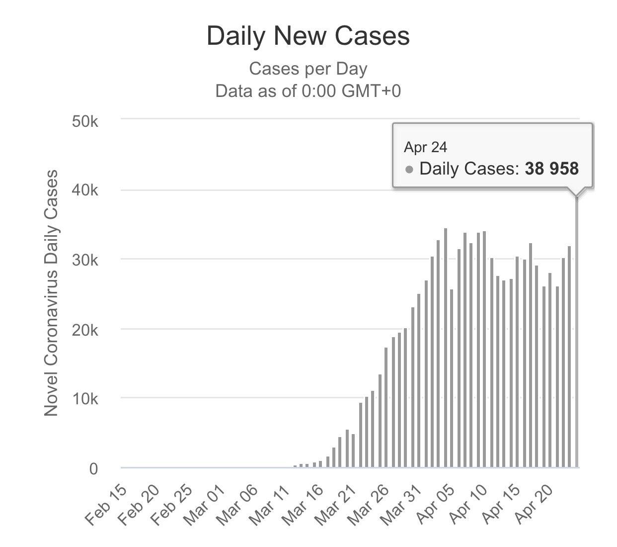 08:43 В США уже зарегистрировано более 925 000 инфицированных коронавирусом. За минувшие сутки беспрецедентный скачок - почти 40 000 новых случаев. Умерли за сутки более 1 900 человек.