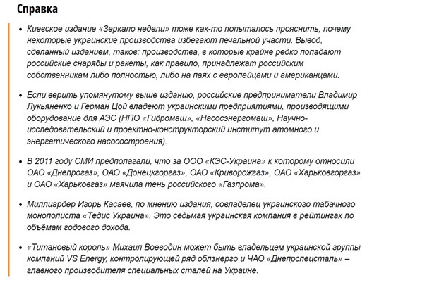 Впрочем, не стоит думать, что Фирташ, Жеваго или Ануфриев уникальны. На примере Ануфриева мы просто попытались показать, как может иногда работать схема договоренностей. С Фирташем все происходит иначе: в его продукции нуждается Россия, продукции Жеваго – Белоруссия. Богуслаеву с его Моторсичью просто не повезло. Точнее – не повезло Богуслаеву, которого арестовала СБУ, а с его заводом вроде бы все в порядке. Ахметову не повезло, что некоторые его предприятия оказались в зоне обороны и использовались в качестве крепости.