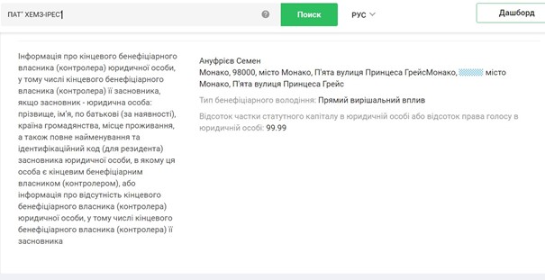 Конечным бенефициарным владельцем является Семен Ануфриев, проживающий в Монако.
