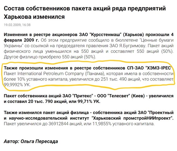 Согласно реестрам, ПАО "ХЭМЗ-IPEC" - чисто украинское предприятие: