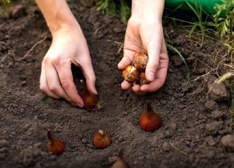 Лучшее время для высадки цветов – конец сентября. Высаживать тюльпаны нужно в почву, имеющую температуру ниже +10 °С. Глубина высадки должна составлять не более тройной высоты луковицы, но не менее 5 см.