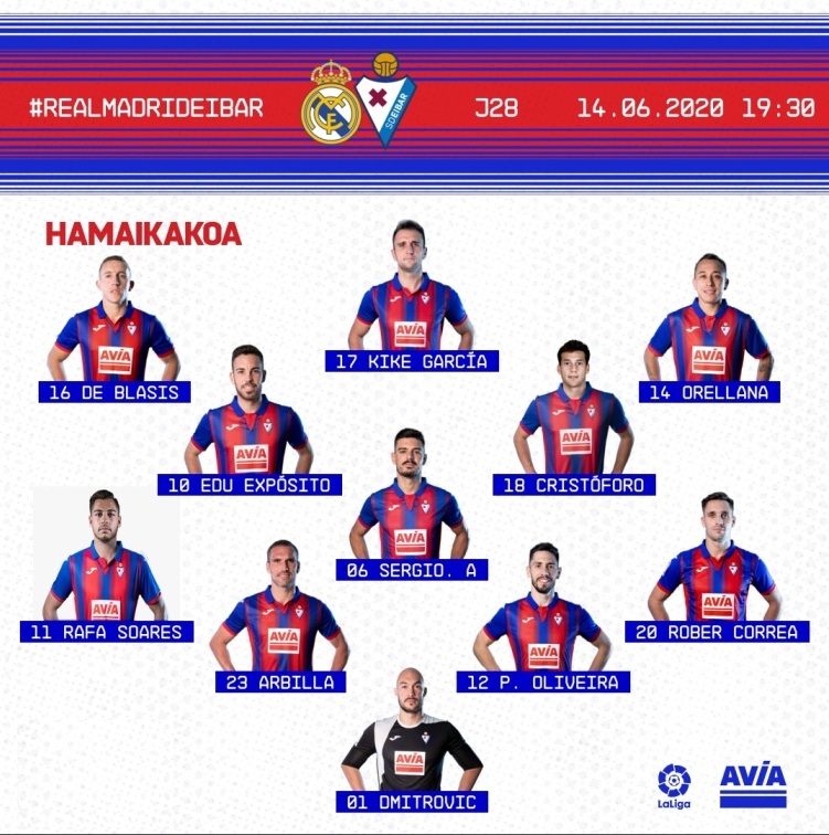 "Эйбар": Дмитрович, Оливейра, Рафа Соареш (Бигас, 57), Арбилья, Корреа, Экспосито, Альварес, Орельяна (Леон, 57), Де Бласис, Кристофоро, Кике Гарсия (Энрик, 57).