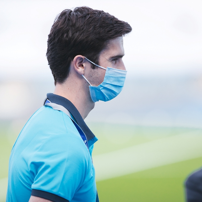 11 - Альварес отдавал длинную передачу на ход Кике, но пас оказался слишком сильным и Куртуа забрал мяч.