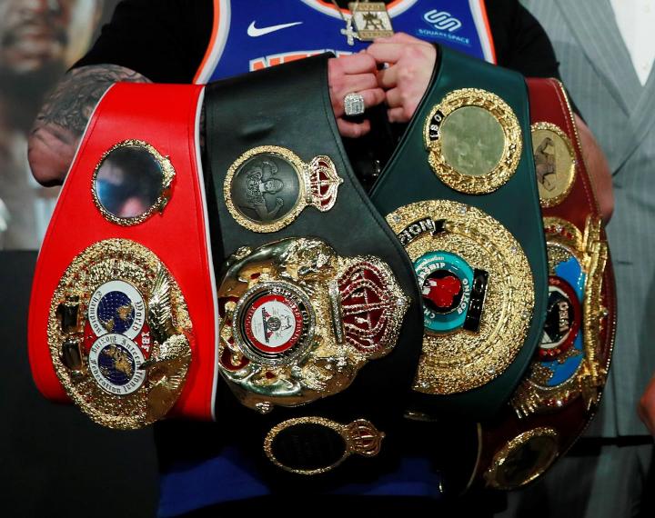 Все пояса, которые будут стоять на кону в сегодняшнем бою.