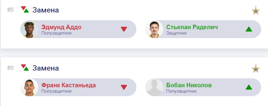 85. двойная замена у "Шерифа"