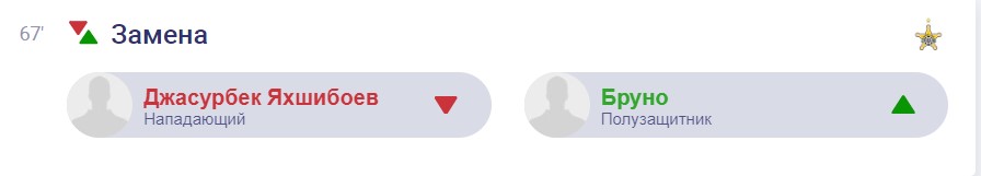 67. вторая замена от Юрия Вернидуба