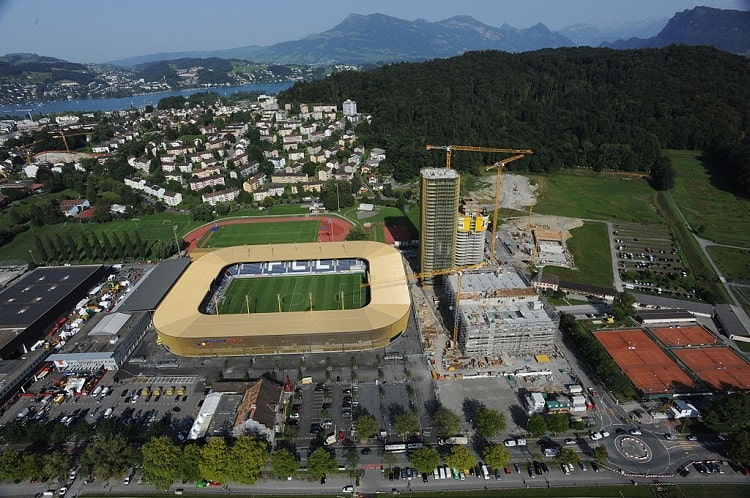 Стадион "Свисспорарена" с высоты птичьего полета.
