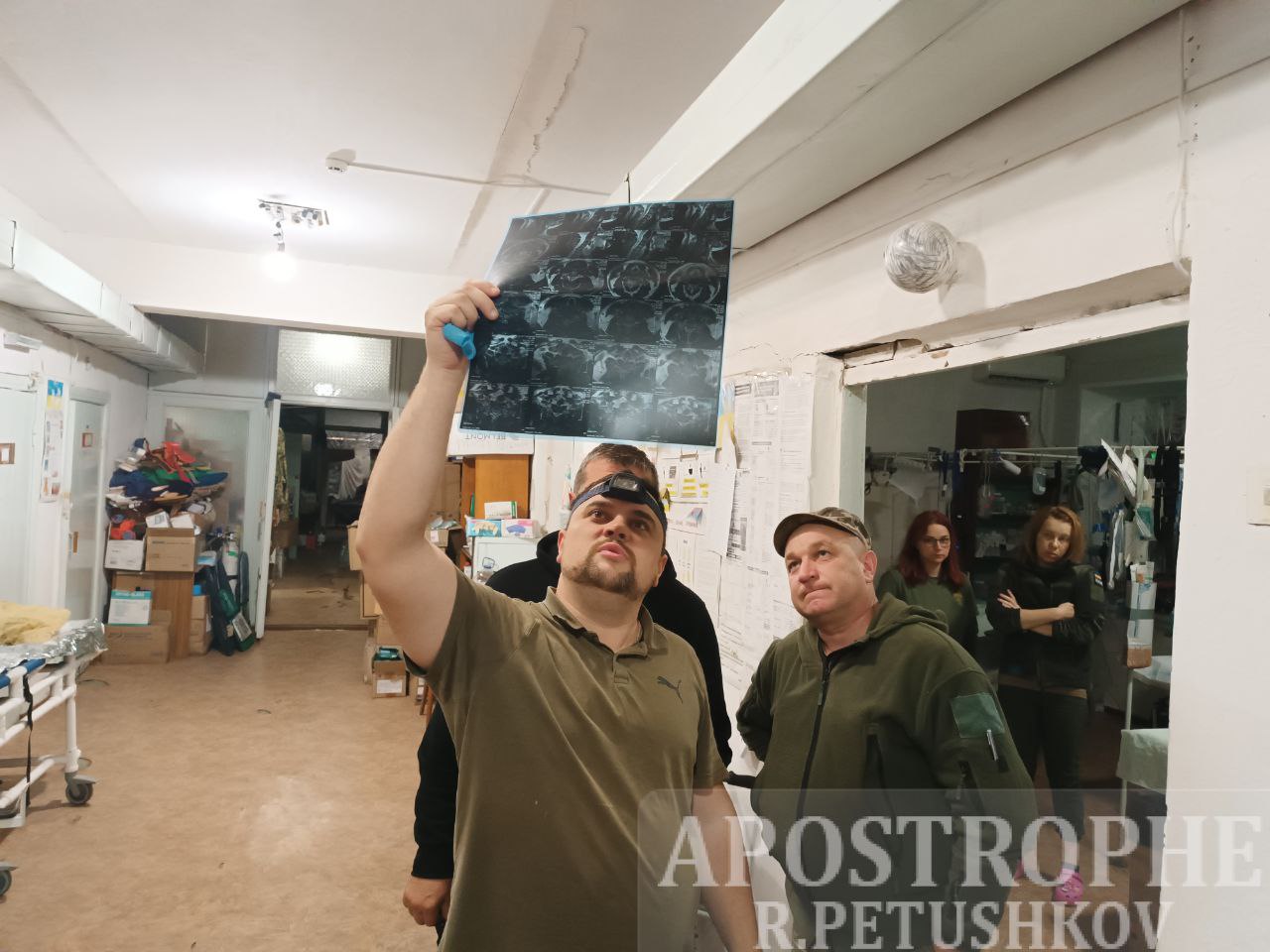 Когда привозят раненого, все без лишних вопросов знают что им делать. Медики забирают бойца на осмотр, другие подносят все необходимое, отдельный человек уже заносит данные пострадавшего в картотеку, одновременно складываются личные вещи бойца, все подписывается и упаковывается в пакеты для передачи в госпиталь.