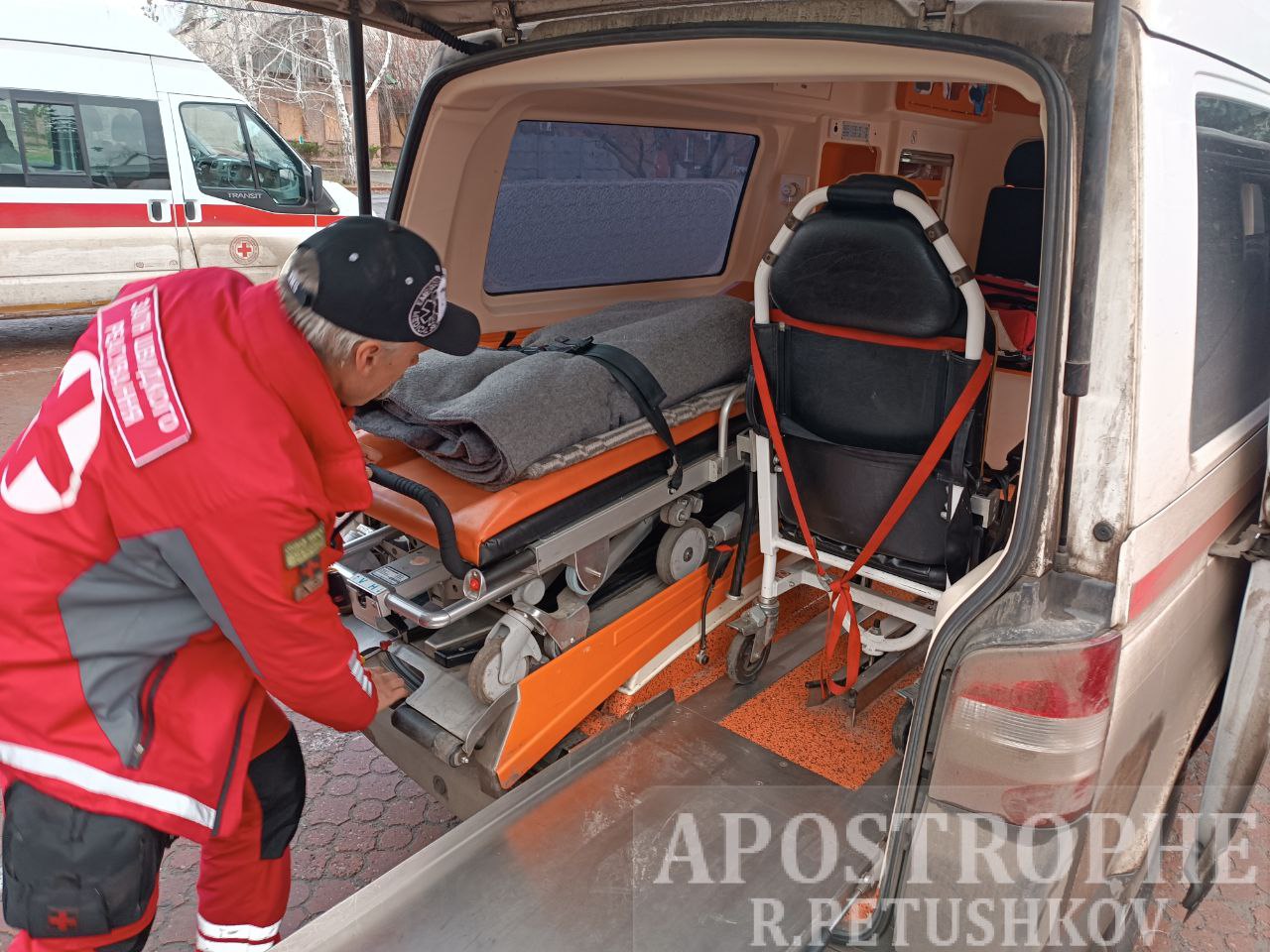 Спустя некоторое время привозят еще одного пострадавшего. Он средней тяжести – получил осколочное ранение в руку и шею. Медики за закрытыми дверями проводят с ним необходимые манипуляции и через 10 минут пациента передают нам для перевозки в госпиталь. Довозим спокойно, мужчина всю дорогу разговаривал по телефону с родными, успокаивал их, заверяя что с ним ничего критического не произошло, главное, что остался жив.