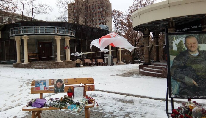 Кроме того, место ликвидации Захарченко стало пунктом паломничества сочувствующих идеям "русского мира", которые несут к кафе "Сепар" цветы, лампады, детские рисунки с надписью "спасибо, батя" и "георгиевские" ленты.