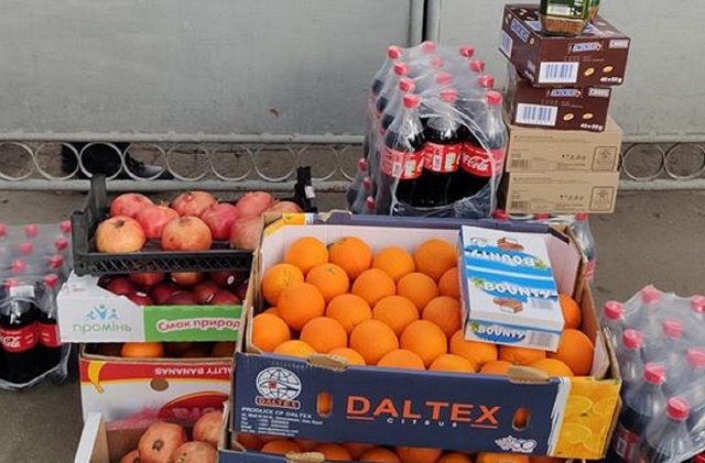 Продукты, переданные переселенцами для украинцев, оказавшихся на обсервации в Новых Санжарах