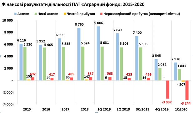 Например, за I квартал этого года госкорпорация получила 207,6 млн грн чистого убытка, хотя в I квартале 2019 чистая прибыль составляла 6,2 млн грн. Еще раньше, в 2017-2018 годах "Аграрный фонд" стабильно генерировал более 100 млн грн. прибыли.