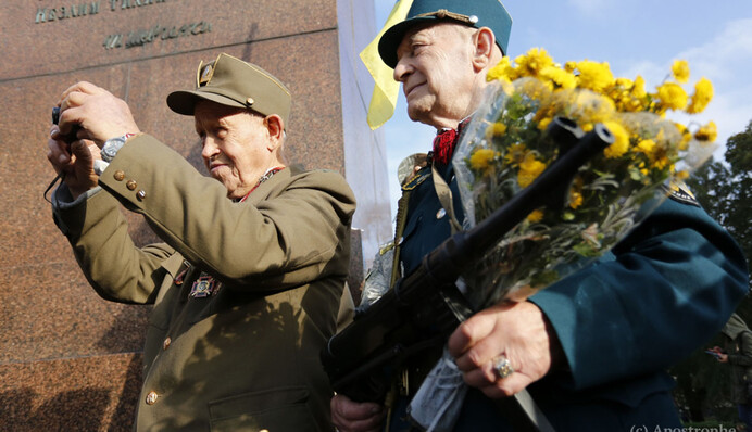 В пятницу, 14 октября, в Киеве уже традиционно прошел "Марш славы героев", организованный Всеукраинским объединением "Свобода" в честь 74-й годовщины создания Украинской повстанческой армии. Сначала несколько тысяч участников собрались в парке Шевченко на торжественное вече, а затем отправились маршем по центральным улицам столицы Украины. Как проходили вече и марш "свободовцев" наблюдал фотокорреспондент "Апострофа" ВЛАДИСЛАВ МУСИЕНКО.