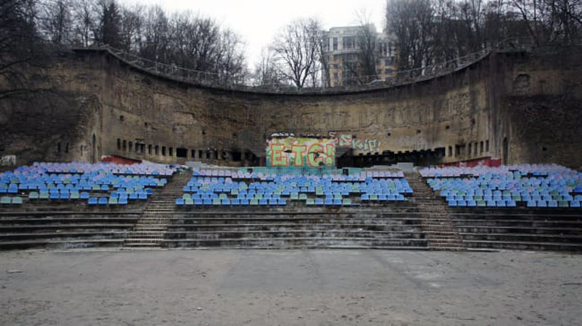 Его считают мистическим местом с недостаточно приятной славой, но атмосфера и пейзажи там действительно стоят инстаграмного фото, желательно с характерным хэштегом и философским текстом в описании. Она, то есть атмосфера, начинается еще с панорамной аллеи сразу за станцией метро "Арсенальная" и ведет всю дорогу до руин стены, которая собственно и является изюминкой Зеленого театра. Две опорные стены построили здесь во второй половине XIX века, чтобы укрепить Печерскую крепость.