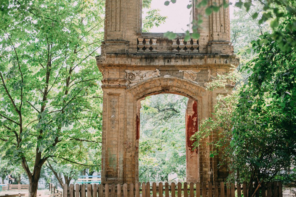 Есть возле метро Лукьяновская двор, а в нем - кусок старого здания, издалека похожего на крепость. А на самом деле это был некий гламурный доходный дом, в котором жил в том числе и писатель Иван Нечуй-Левицкий. Никто не знает, почему его не разрушили до конца, но сейчас имеем что имеем: неожиданная локация для фото в самом сердце исторического Киева! Руины являются памятником архитектуры местного значения от 1986 года, убирать их запрещено, но и восстановить нельзя, потому что вокруг многоэтажки. Остается заботиться о жемчужине и приходить сюда на фотосессии.