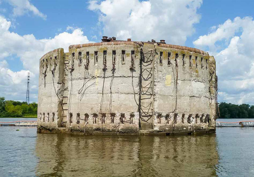 Странный загадочный объект прямо посреди Днепра, неподалеку от Южного моста и Осокорков, у многих вызывает вопрос - что же это такое? Мало кто знает назначение округлой бетонной башни, а потому многие придумывают о ней легенды. Ее называют огневой точкой времен Великой Отечественной, входом в сталинские тоннели и еще много как. А на самом деле это лишь пункт, где настраивают корабельные компасы. Дачники на Осокорках иногда наблюдают, как корабли делают вокруг башни несколько кругов - таким образом они проверяют погрешность своих компасов, что в науке называется магнитной девиацией. Это очень важно, поскольку погрешности в компасах могут привести к беде, особенно учитывая наличие двух водохранилищ, на стыке которых находится Киев.