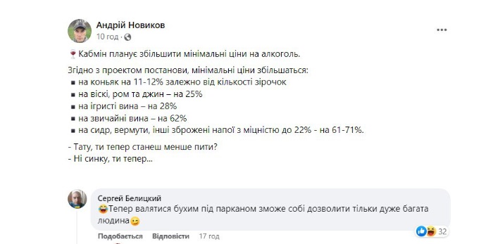 Анекдот этот всплыл в сети во время обсуждения упомянутого проекта постановления Кабмина о повышении цен на спиртные напитки.