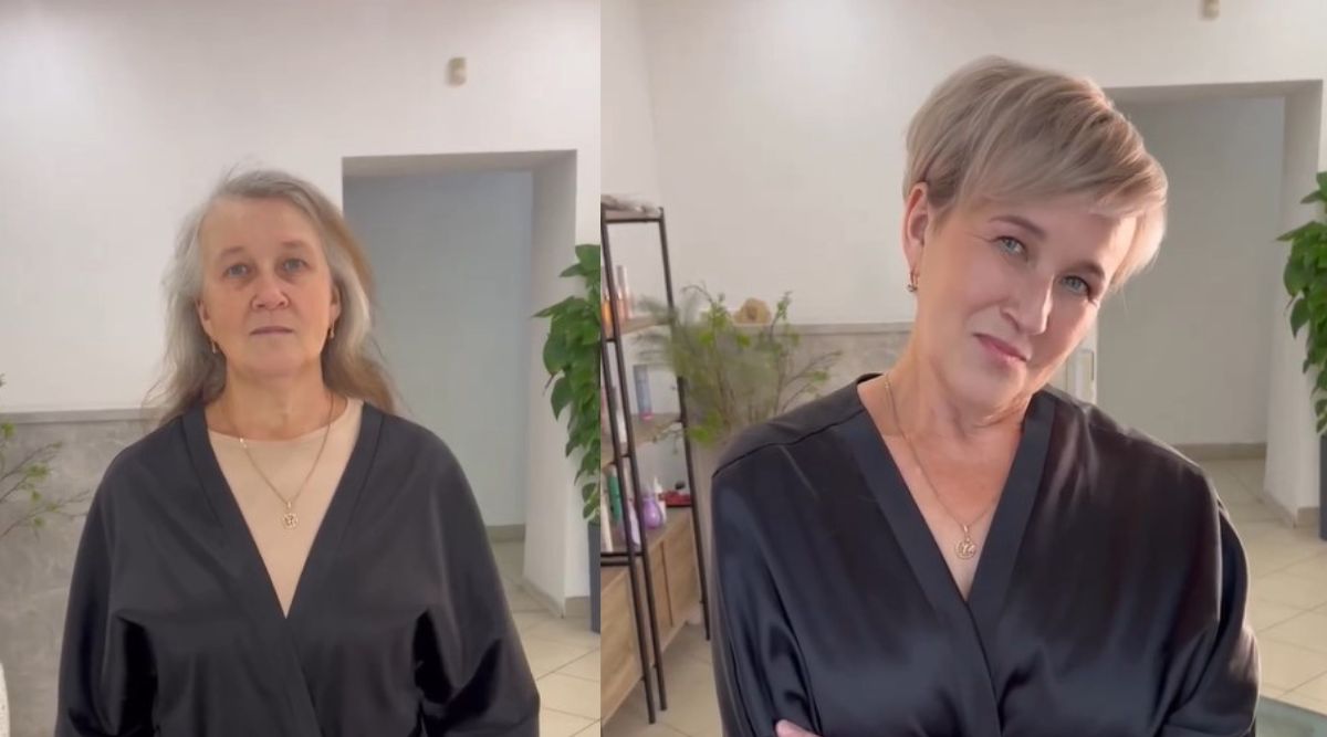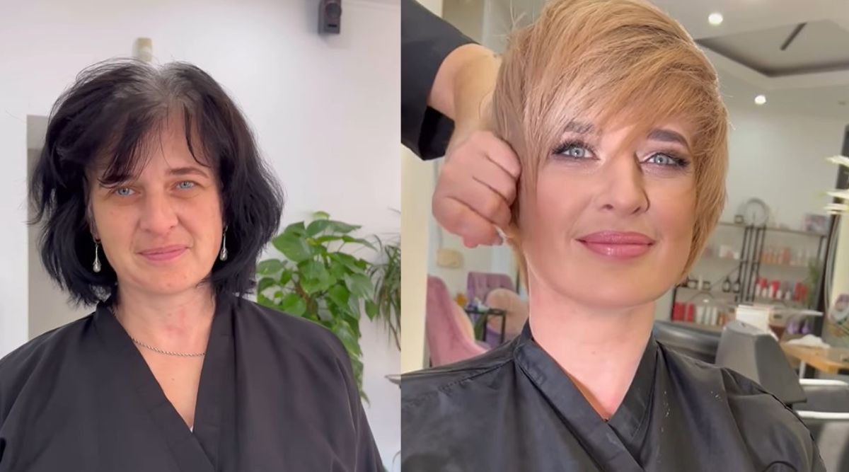 Следующим примером того, как цвет волос меняет человека, является женщина, решившаяся на покраску и короткую стрижку. После завершения она предстала перед камерой в другом амплуа, и было видно, что получала от новой версии себя невероятное удовольствие.