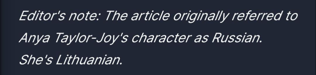 Так, украинцев разозлило, что героиня Ани Тейлор-Джой в фильме была заявлена "россиянкой", об этом говорилось в статье издания Empire. Но авторы фильма исправили журналистов, отметив, что она является литовкой, говорится на канале "Кино того варте".